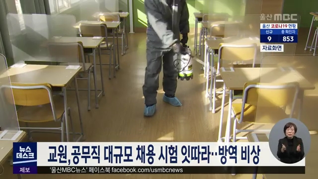 울산시교육청은 초·중등 교원 2차 임용시험과 교육공무직 채용시험 등 잇단 대규모 시험을 앞두고 방역에 비상이 걸렸습니다. 울산교육청은 코로나 확진 판정을 받은 응시생도 시험을 치를 수 있기때문에 울산대학교병원과 경주 양남 생활치료센터를 병원 시험장으로 지정하는 한편 고사장 방역에 대한 철저한 방역을 실시...