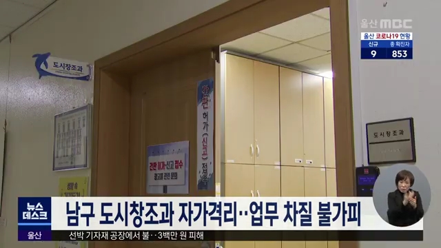 코로나19 확진자가 발생한 남구청 도시창조과 직원들이 2주간 자가격리로 자리를 비우면서 일부 업무의 차질이 불가피할 전망입니다. 남구청은 도시창조과 직원 A씨의 확진 판정으로 같은 부서 직원 34명과 타 부서 직원 등 총 37명이 오는 22일까지 자가격리에 들어갔다고 밝혔습니다. 이에 따라 개발행위 인허가와 간판 ...
