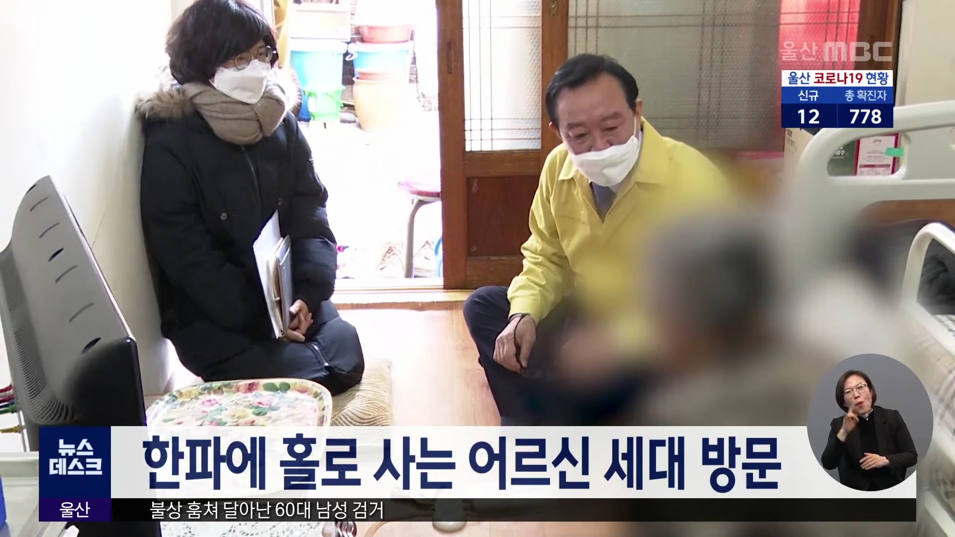 송철호 울산시장은 오늘(1/8) 갑작스런 한파에 혼자서 생활하고 있는 어르신댁을 방문해 애로사항을 청취했습니다. 송 시장은 공직선거법에 따라 방문 위문품 지원이 안돼 독거노인에게 무료 제공되는 도시락을 대신 전달하고 이들을 격려했습니다. 울산에 거주하는 독거노인이면서 기초수급자 또는 차상위게층은 1만5백여 ...