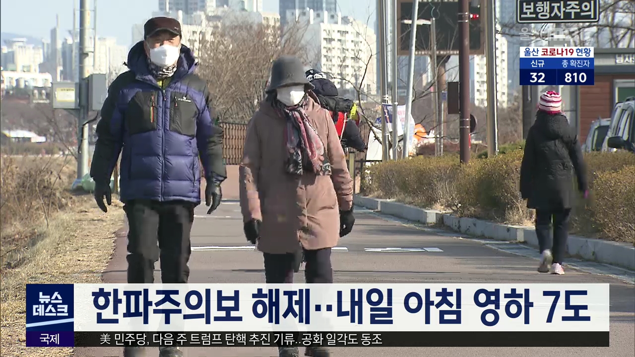 오늘(1/9) 울산지방은 한파특보는 해제됐지만 낮 최고 기온은 영하 2도에 머물며 추운 날씨가 계속됐습니다. 내일은 아침 최저 영하 7도, 낮 최고 3도로 영상 기온을 회복하겠지만, 여전히 평년보다 낮은 기온 분포를 보이겠습니다. 울산기상대는 추운 날씨 속 건조경보가 발효된만큼 화재 예방을 위해 온열기구 관리에 각...