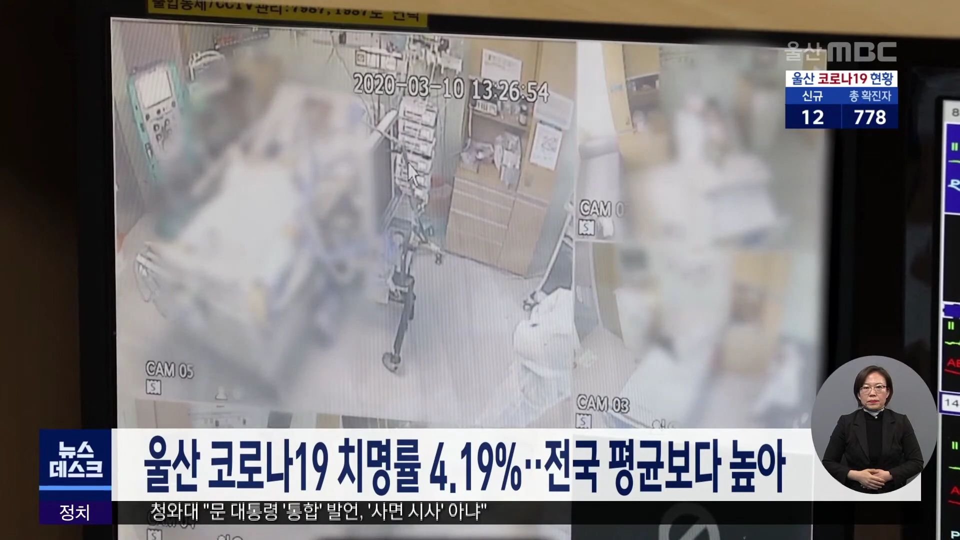울산지역 코로나19 치명률이 현재 4.19%로 전국평균 1.6%보다 훨씬 높은 것으로 나타났습니다. 울산시에 따르면 사망자 32명 중 94%인 30명이 지난해 말 집단 발병한 양지요양병원 관련 확진자로 분석됐습니다. 숨진 사람의 연령층은 60대가 2명, 70대 6명, 80대 17명, 90대 7명 등으로 나타났습니다.