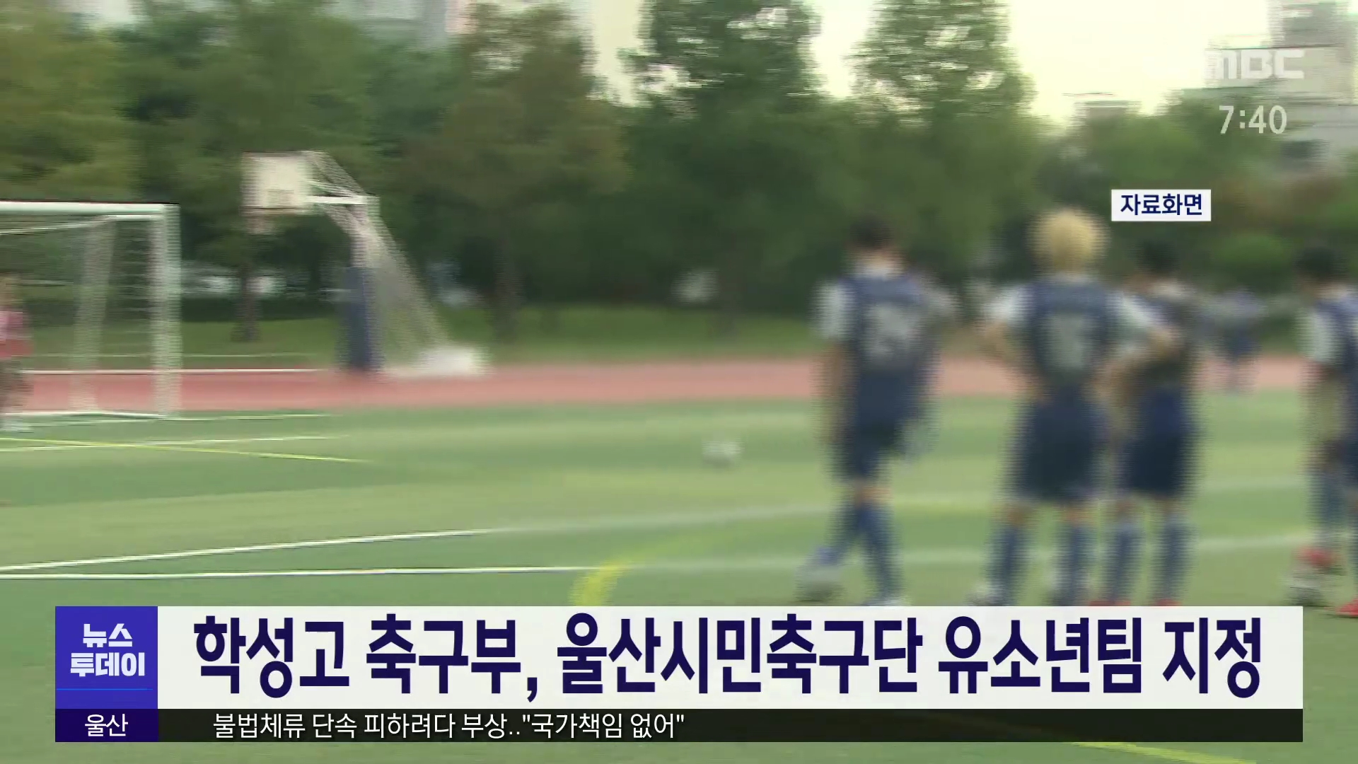 학성고등학교 축구부가 울산시민축구단의 유소년팀으로 지정됐습니다. 울산시체육회는 학성고를 올해 K3리그로 승격한 울산시민축구단 산하 공공스포츠클럽으로 투명하게 운영하며 최적의 훈련 조건을 제공할 계획이라고 밝혔습니다. 학성고는 지난 2016년 심판 매수 비리에 연루돼 영구제명 징계를 받은 지도자가, 음성적...