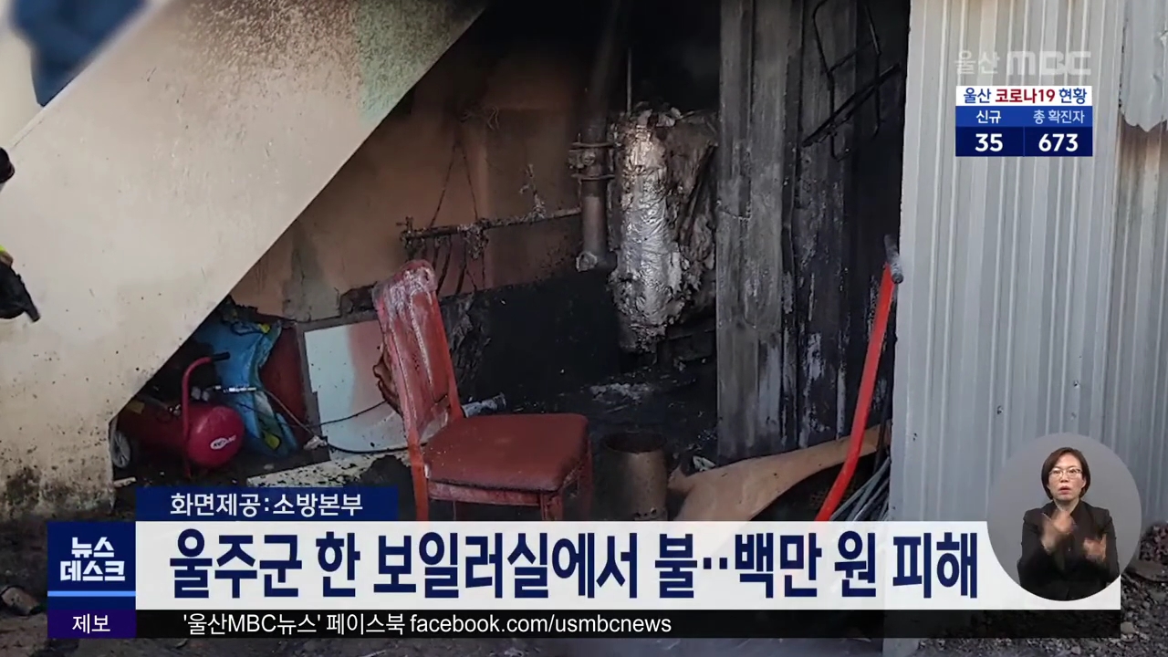 오늘(12/30) 오후 3시 55분쯤 울주군 웅촌면의 한 보일러실에서 불이 나 보일러실 건축물 내부 등을 태워 1백만 원의 재산 피해를 내고 25분만에 꺼졌습니다. 소방당국은 목격자 등을 상대로 화재 발생 경위를 조사하고 있습니다. //