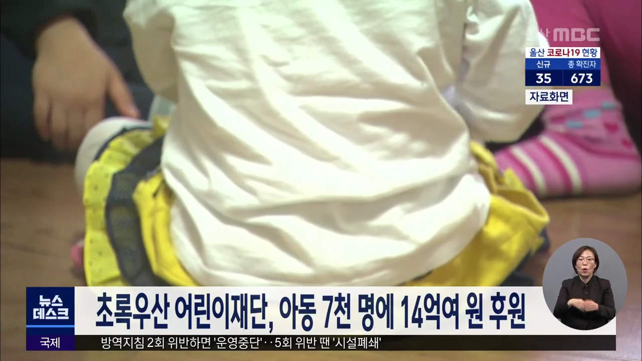 초록우산 어린이재단 울산지역본부가 올해 지역 저소득 아동 7천여 명에게 후원금 14억6천여만원을 전달했습니다. 후원금은 결연 후원을 맺은 한부모가족과 조손 세대, 시설 입소 아동 등이며, 지원금은 생활비와 교육, 학습비로 사용됐습니다, 특히 올해는 코로나19로 저소득층 아동들에게 마스크와 손 소독제, 체온계 등 ...