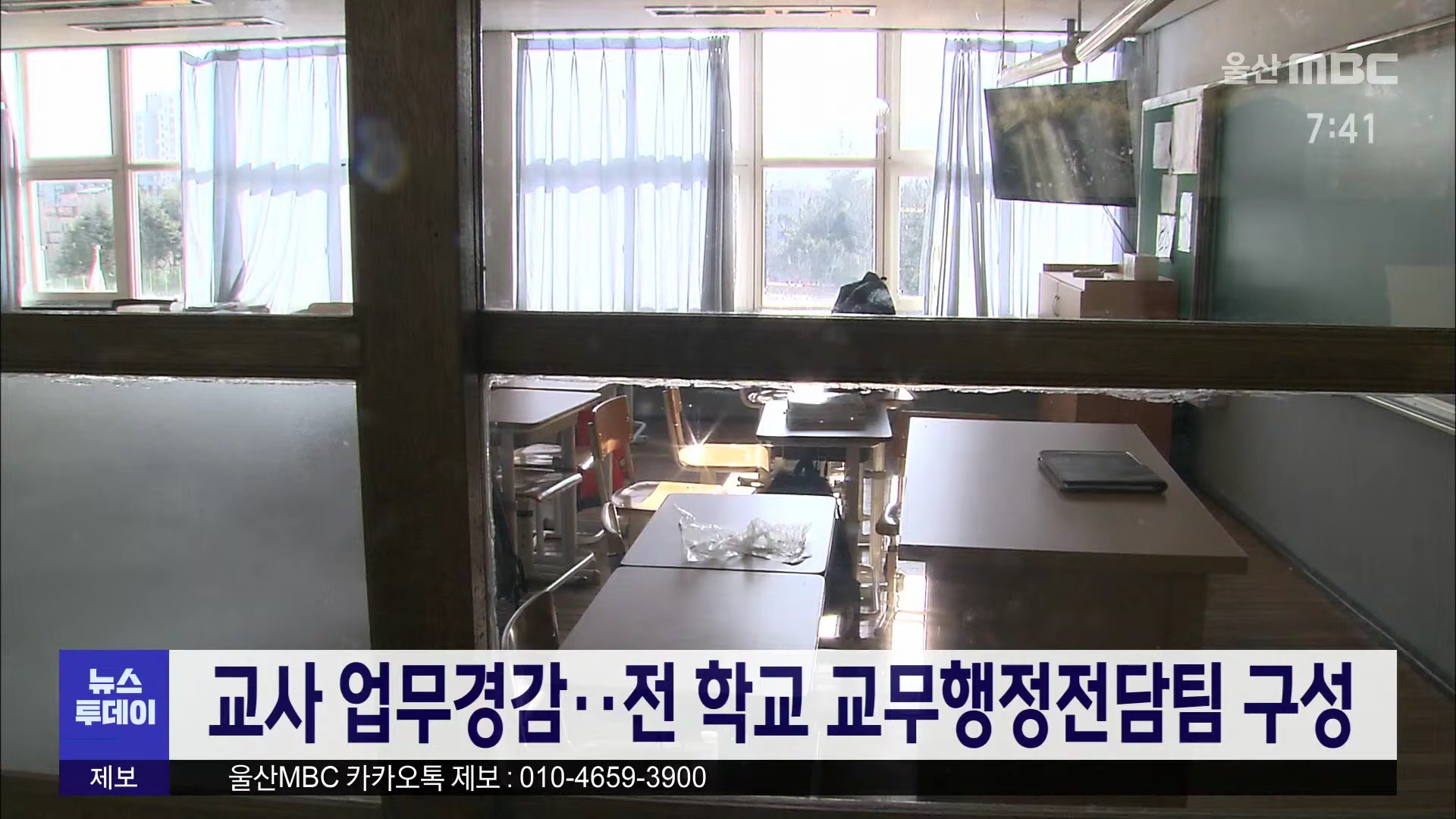 울산교육청이 교육활동 중심의 학교업무정상화 기본계획을 전체 학교에 전달하고 교무행정전담팀을 의무적으로 구성하도록 했습니다. 기본계획은 학교 행정업무를 간소화해 구성원 모두가 교육과 연구활동에 전념하도록 설계됐으며, '학교다운 학교 만들기'를 주제로 3대 과제와 21개 세부사업이 추진됩니다.//