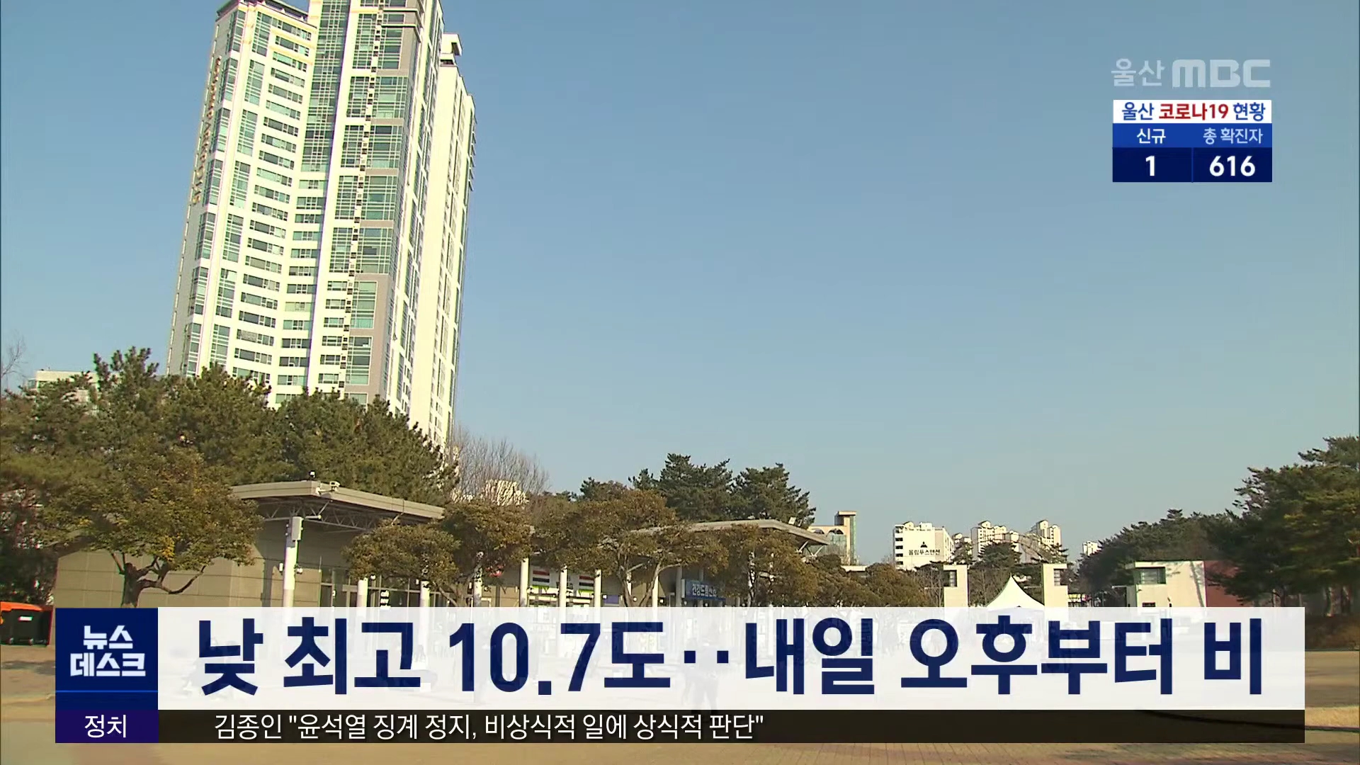 주말인 오늘(12/26) 울산지방은 건조한 날씨 속에 낮 최고 기온이 10.7도까지 오르며 다소 포근한 기온 분포를 보였습니다. 내일은 대체로 흐리겠으며 1~10도의 기온 분포를 보이겠고, 오후부터 비가 내리기 시작해 밤까지 5mm 내외의 비가 예상됩니다. 울산기상대는 당분간 서쪽에서 따뜻한 기류가 유입되며 모레까지 평년...