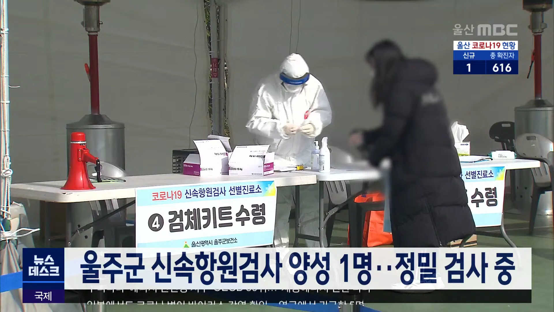 울주군이 오늘(12/26) 실시한 신속항원검사에서 1명이 양성 반응이 나왔습니다. 울주군은 이 사람의 검체를 울산시 보건환경연구원에 보내 정밀한 유전자 증폭 검사를 실시하고 있습니다. 이로써 지난 23일부터 시작된 울주군 신속항원검사에서 모두 2명이 양성 반응을 보였고, 이 중 1명은 실제로 양성 판정을 받았습니다....