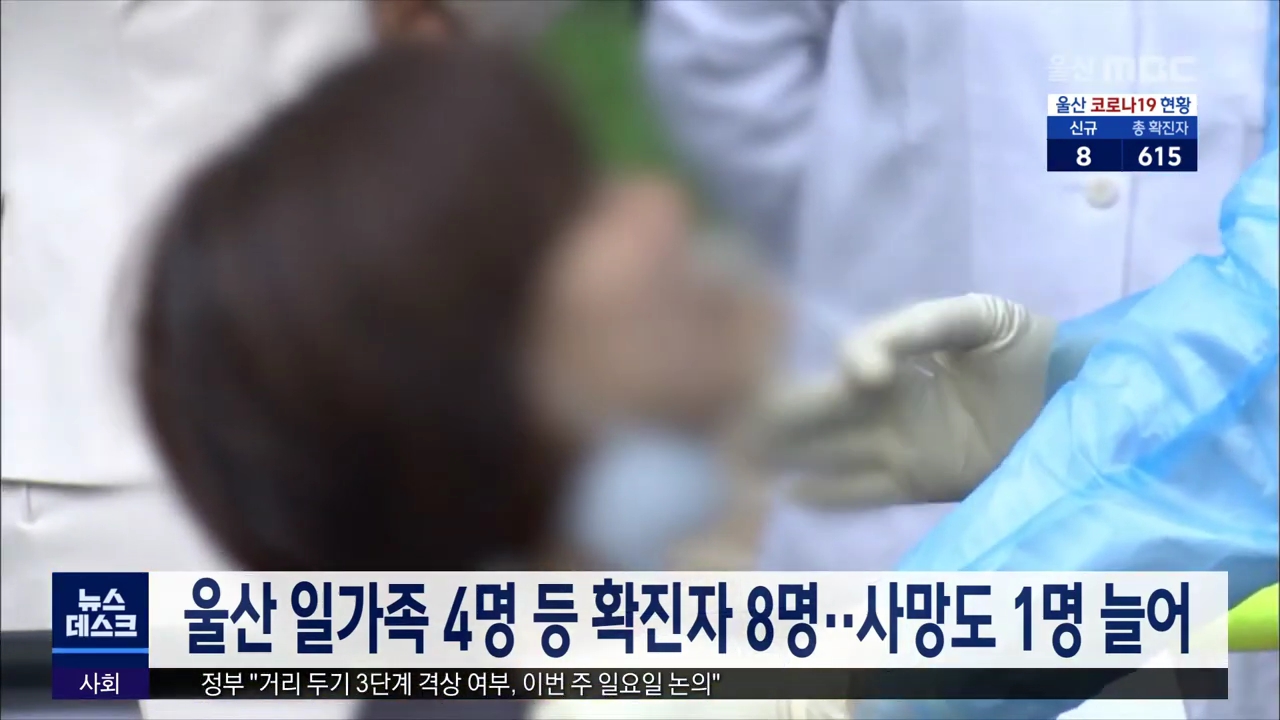 울산 일가족 4명 등 확진자 8명..사망도 1명 늘어