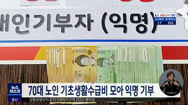 70대 노인 기초생활수급비 모아 익명 기부