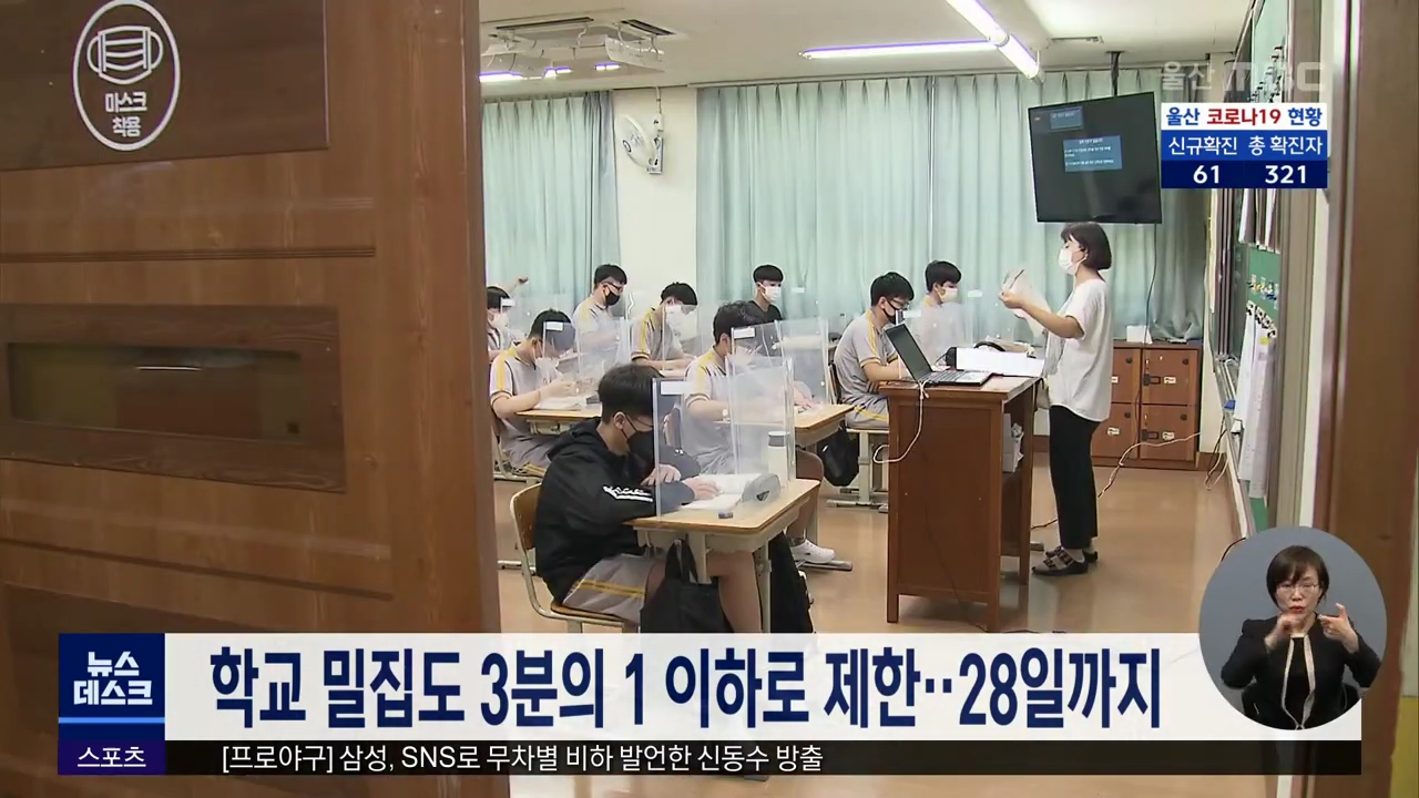 학교 밀집도 3분의 1 이하로 제한..28일까지
