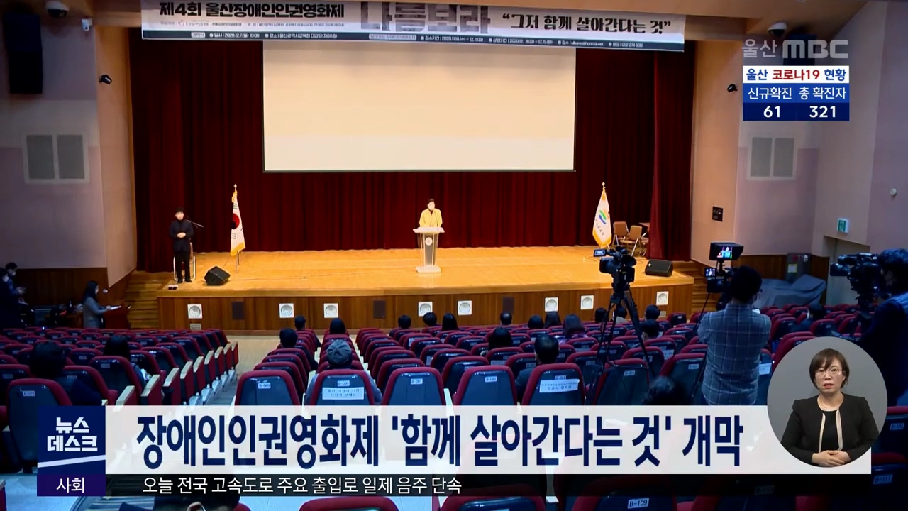 제4회 울산장애인인권영화제가 오늘(12/7) 울산교육청 대강당에 개막했습니다. 전국장애인부모연대 울산지부가 주관하는 이번 영화제는 오는 15일까지 '그저 함께 살아간다는 것'을 주제로 장애인 인식 개선과 관련한 6편의 영화를 상영합니다. 영화제는 코로나19 확산을 우려해 영화 상영을 희망하는 학교나 기관, 단체를 ...