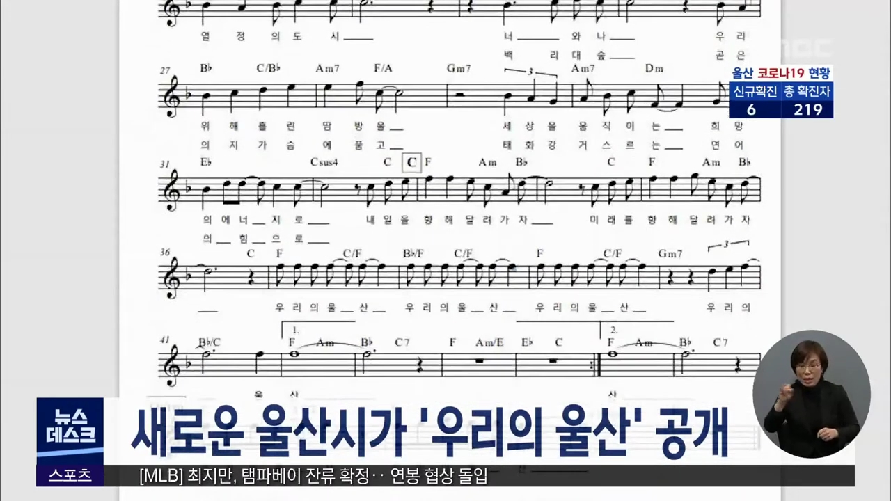 '대구 중구의 노래' 가사를 표절한 의혹이 제기돼 새롭게 만들어진 울산시가인 '우리의 울산'이 오늘(12/3) 공개됐습니다. 작가는 김수빈, 작곡은 양상진, 노래는 가수 테이가 맡아 울산시가 제작 참여자 모두 울산 출신입니다. 울산시는 시 홈페이에서 악보와 음원을 내려받아 누구나 들을 수 있다고 설명했습니다. //