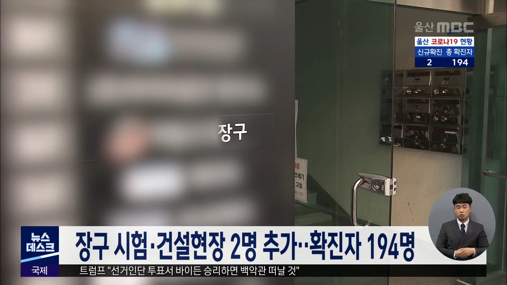 울산에서는 오늘 코로나19 확진자가 2명이 늘었습니다. 추가 확진된 남구 거주 30대 남성은 장구 시험장이 있는 건물에서 근무하다가 시험 참석자들과 승강기를 함께 이용하는 과정에서 감염된 것으로 추정됩니다. 또 울주군에 거주하는 40대 남성은 지난 17일에서 19일 경북 경산시의 한 건설 현장에서 확진자와 접촉해 감...