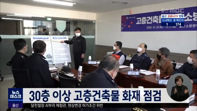 울산시는 오늘(11/23) 중구 성남동 롯데캐슬스카이에서 고층건축물 점검을 실시했습니다. 시는 화재안전시설 유지관리 여부와 내·외장재 실태를 살피고 피난안내도 설치를 당부했습니다. 이번 점검은 지난달 8일 삼환아르누보 주상복합 건축물 화재를 계기로 30층 이상 고층건축물 33곳을 대상으로 진행되고 있습니다. //