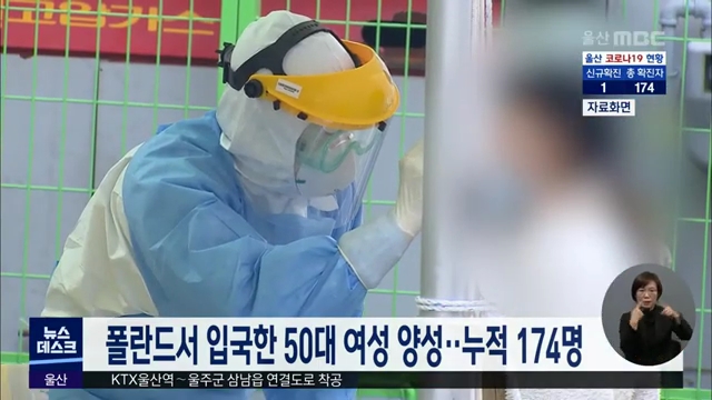 폴란드에서 입국한 동구 거주 50대 여성이 코로나19 확진 판정을 받아 울산 확진자가 174명으로 늘었습니다. 이 여성은 지난해 11월부터 1년 동안 폴란드에서 체류하다 국내 입국해 받은 코로나19 검사에서 양성이 나왔습니다.