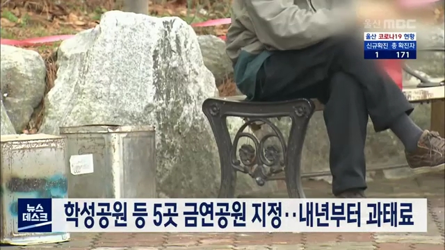 코로나19로 공원을 찾는 사람들이 늘고 흡연 민원이 자주 발생함에 따라 중구 학성공원 등이 금연공원으로 지정됐습니다. 중구는 학성공원과 공룔발자국공원, 정지말공원, 우정공원, 평동공원 등 5곳을 금연공원으로 지정했습니다. 중구는 3개월의 계도기간을 거친 뒤 내년 2월20일부터 금연공원에서 흡연을 하면 과태료 2...