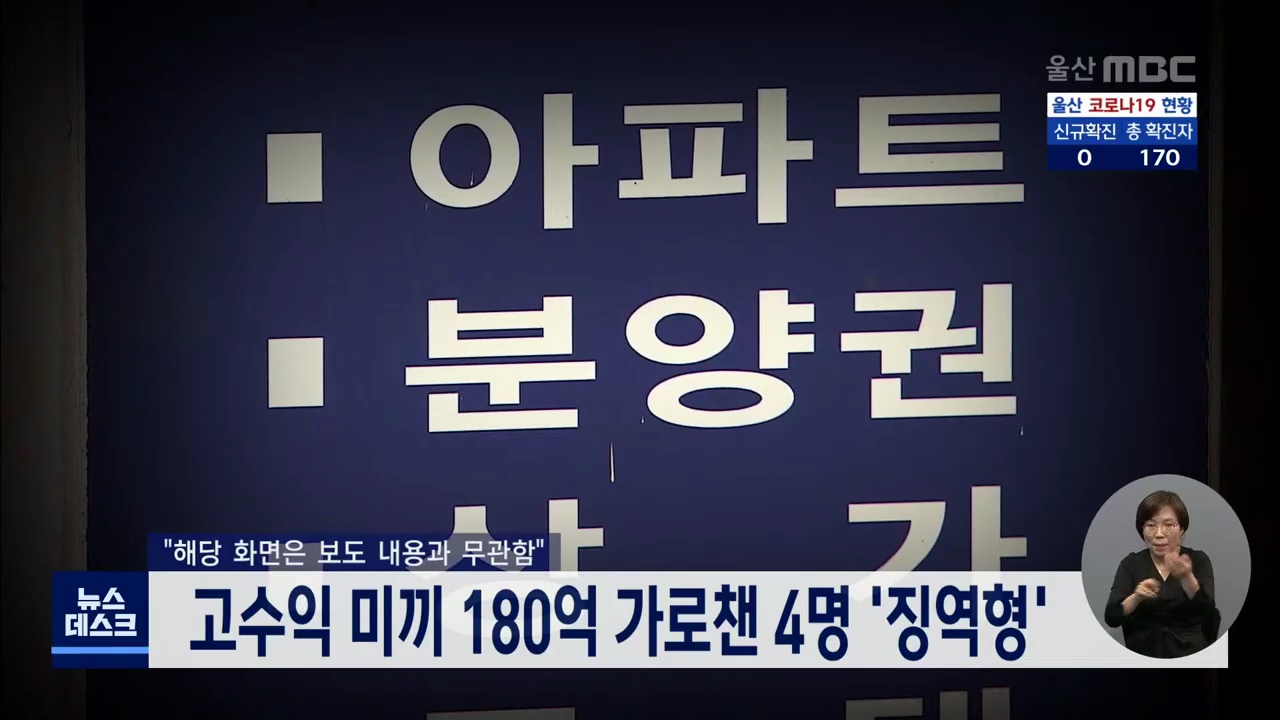 울산지법 형사1단독 김정환 판사는 오피스텔과 상가 분양 사업에 투자하면 높은 수익을 올릴 수 있다며 180억 원을 가로챈 혐의로 기소된 분양대행 업체 대표 A씨에게 징역 1년 6개월을, 투자자 모집책 B씨에게 징역 10개월을 선고했습니다. 또 시행사 관계자 C씨에게 징역 4개월을, 시행사 대표 D씨에게 징역 6개월에 집행...