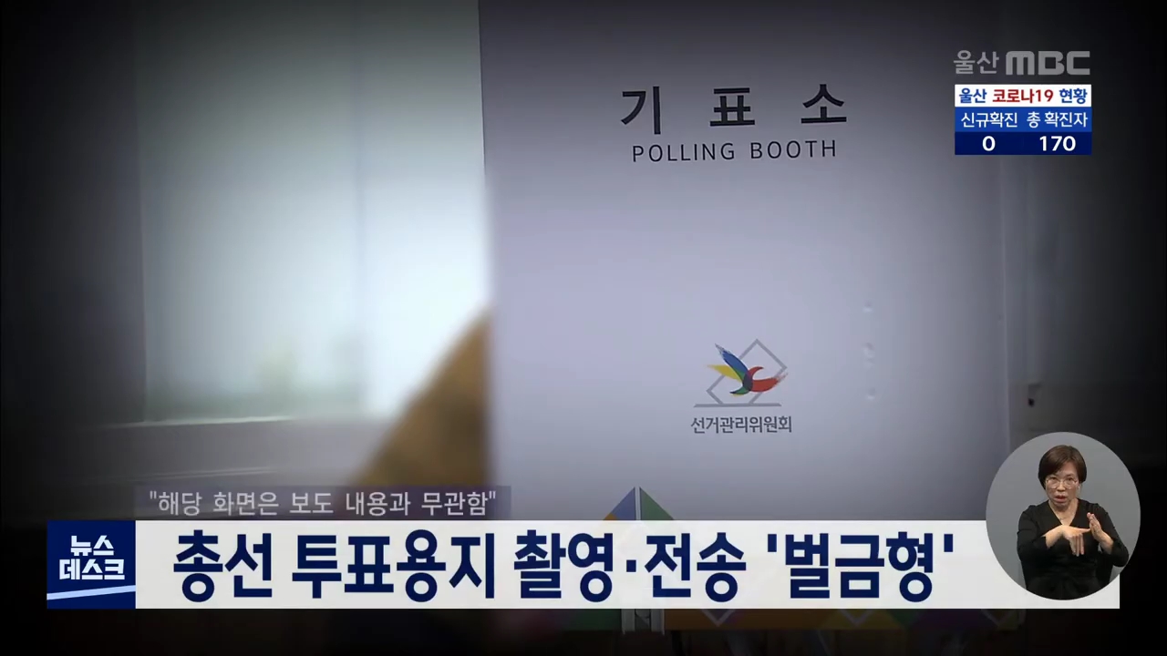 울산지법 형사12부는 국회의원 선거 기표소에서 투표용지를 촬영해 전송한 혐의로 기소된 46살 A씨에게 벌금 50만 원을 선고했습니다. A씨는 지난 4월 총선을 앞두고 울산의 한 사전투표소에서 특정 후보를 찍은 투표 용지를 휴대전화 카메라로 촬영한 뒤 다른 사람에게 전송한 혐의로 재판에 넘겨졌습니다.//