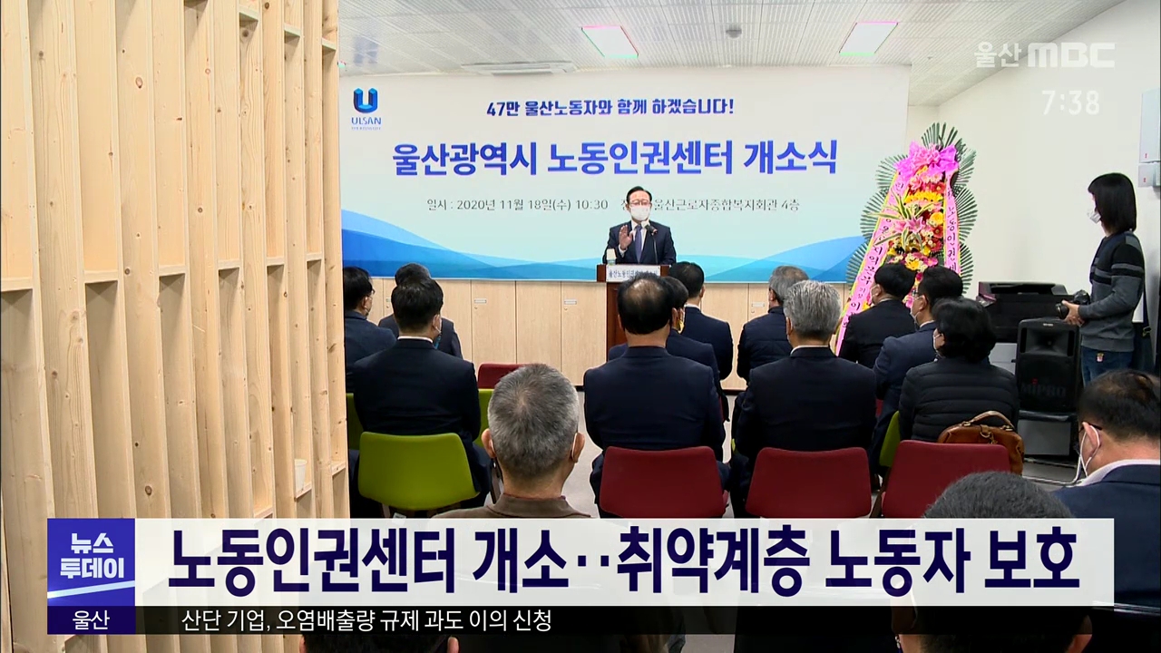 울산시 노동인권센터가 오늘(11/18) 남구 삼산동 근로자종합복지회관 4층에서 문을 열었습니다. 노동인권센터는 영세사업장과 비정규직, 배달과 대리운전 등 플랫폼 노동자 같은 취약 노동계층에 대한 실태 조사와 지원 정책 발굴에 나설 계획입니다. 노동인권센터는 올해 출범한 울산일자리재단이 맡아 사업을 수행합니다....