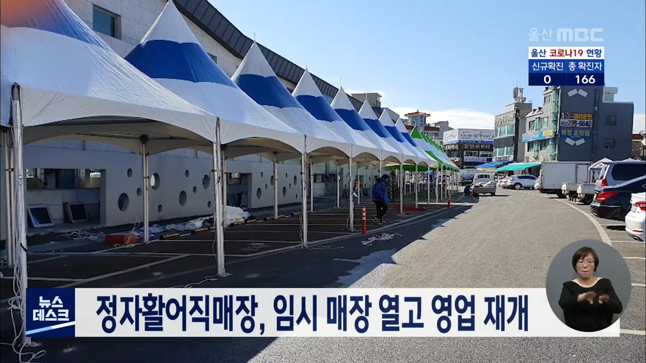 지난 9월 화재로 불탄 북구 정자활어직매장 건물 뒤편에 임시 매장이 개설됩니다. 북구는 2천만 원의 예산을 투입해 수도와 전기공사 등을 거쳐 임시 매장 설치를 완료하는 한편 피해를 입은 상인들에게 재해구호기금 7천600만 원을 지원한다는 계획입니다. 정자활어직매장은 기존 12월 초 복구가 완료될 예정이었지만 피해...