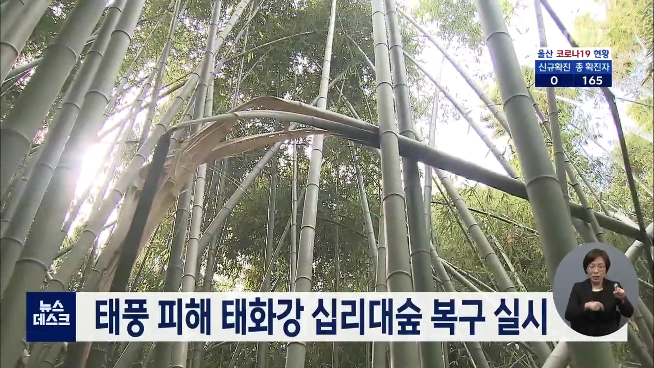 지난 9월 초 태풍 마이삭으로 피해를 입은 태화강국가정원 십리대숲 복구사업이 실시됩니다 울산시는 2억4천만 원을 들여 다음 달 중순까지 전체 면적 10헥타르 면적의 십리대숲 대나무 가운데 피해가 큰 2.8헥타르 대나무를 제거합니다. 시는 관광객 편의를 위해 3~4구역으로 나눠 순차적으로 작업을 진행할 게획입니다. /...