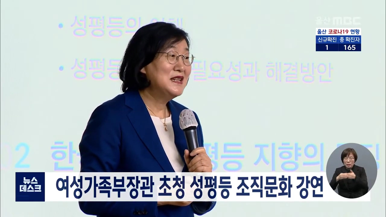 이정옥 여성가족부장관이 오늘(11/3) 울산시를 방문해 간부공무원과 시의원 등을 대상으로 '성평등한 조직문화를 위한 혁신 리더십'에 대해 교육을 실시했습니다. 이번 교육은 전국 4개 시도가 신청한 가운데 울산에서 가장 먼저 개최됐습니다. 아펏 송철호 시장은 이 장관과의 면담에서 청소년이 미래산업을 체험할 수 있...