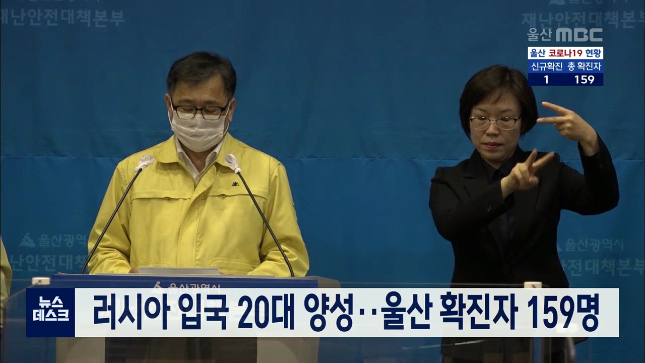 러시아에서 입국해 울산에 온 20대가 코로나19에 감염돼 확진자가 159명으로 늘었습니다. 울산시는 울주군에 거주하는 A씨가 어제(10/24) 러시아에서 입국해 KTX울산역 선별진료소에서 검사를 받은 결과 코로나19에 감염된 것으로 확인됐다고 밝혔습니다. 울산시는 추가 접촉자를 파악하는 등 역학조사를 벌이고 있습니다. ...