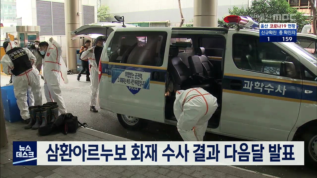 삼환아르누보 화재 사건을 수사 중인 경찰은 화재 원인과 불이 빠르게 확산된 경위 등 관련 수사 결과를 다음달 발표할 예정이라고 밝혔습니다. 울산지방경찰청은 국과수, 소방 등과 합동감식을 벌인 결과 처음 불이 난 곳을 3층 테라스 아래로 보고 정확한 화재원인을 수사하고 있습니다. //