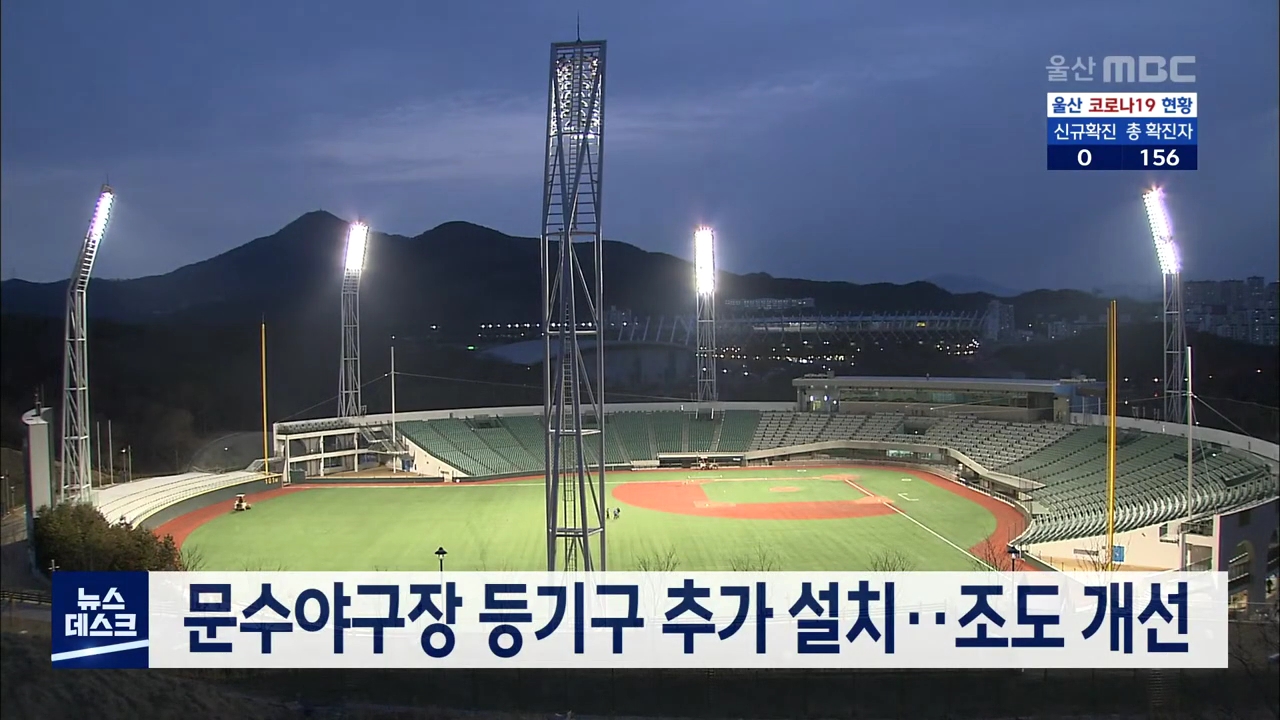 프로야구 경기 관람 환경을 개선하기 위해 문수야구장 조명시설이 보강됐습니다. 울산시설공단은 최근 종합운동장 조명등 교체 공사 후 남은 폐자재 가운데 재사용이 가능한 등기구 56개를 문수야구장 조명탑에 추가 설치했다고 밝혔습니다. 이로써 야구장 등기구가 372개로 늘어나, 기존 1천965룩스인 평균조도가 2천205룩...