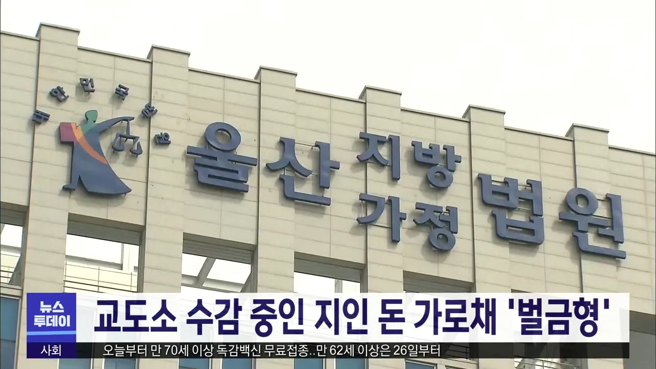 울산지법 형사3단독 김용희 판사는 교도소에 수감 중인 지인의 돈을 가로챈 혐의로 기소된 35살 A씨에게 벌금 300만 원을 선고했습니다. A씨는 지난해 4월 포항교도소에 수감 중인 지인이 자신의 어머니에게 생활비 245만원을 전해 달라며 A씨의 계좌로 돈을 보냈지만 개인 용도로 사용한 혐의로 재판에 넘겨졌습니다.//