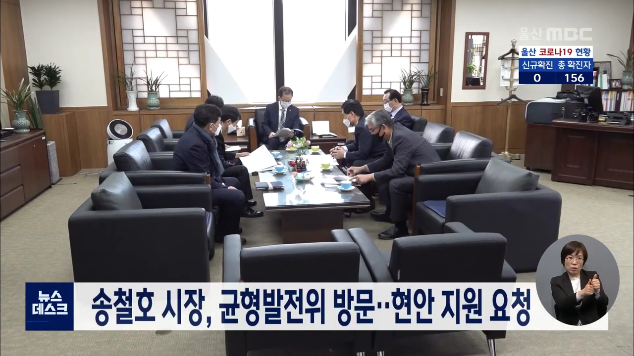 송철호 울산시장이 오늘(10/15) 대통령 직속 국가균형발전위원회와 국무조정실을 잇달아 방문해 지역 현안 해결에 대한 적극적인 지원을 요청했습니다.이 자리에서 송 시장은 안정적인 물 공급을 위해 진행 중인 낙동강 통합물관리 사업을 한국판 그린뉴딜에 포함해 신속히 추진할 수 있도록 해달라고 요청했습니다.이밖에 ...