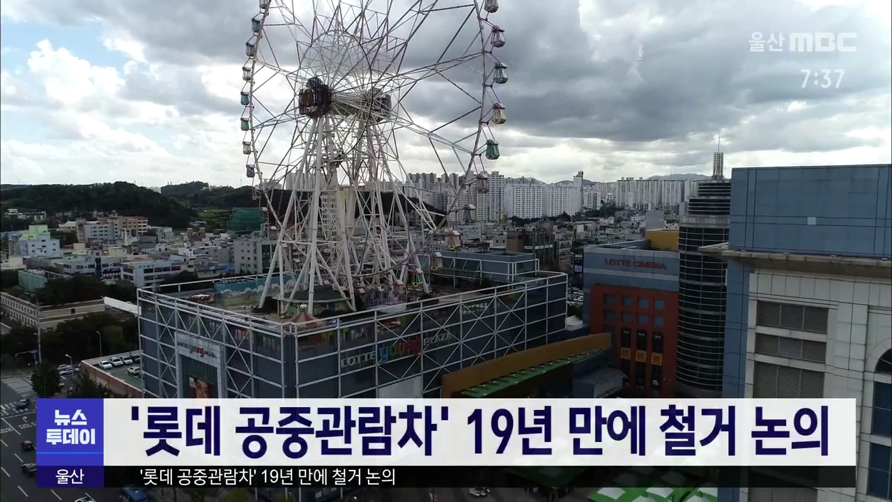 울산 도심에 있는 '롯데 공중관람차'가 들어선지 19년 만에 적자 누적을 이유로 철거가 논의되고 있습니다. 롯데는 최근 울산시에 백화점 7층 옥상에 있는 공중관람차가 연간 1억 6천만원 가량 적자여서 철거를 문의하는 공문을 보냈습니다. 울산시는 이에대해 공중관람차가 울산 명물 중 하나라며 롯데에서 양도 받아 ...