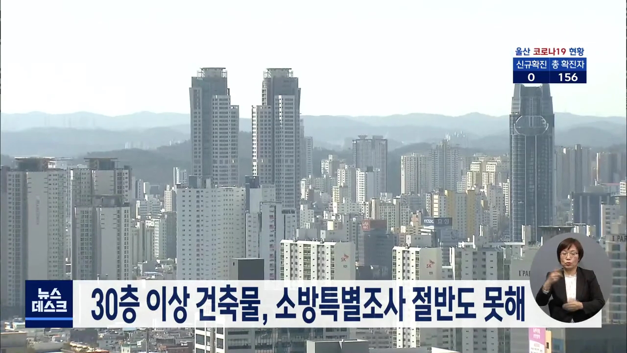 울산의 30층 이상 고층 건물 가운데 절반 이상이 특별 소방 점검을 받지 않은 것으로 드러났습니다. 국회 행정안전위원회 서범수 국회의원은 소방청 자료를 분석한 결과 지난 3년동안 울산의 30층 이상 고층 건물 147곳 가운데 소방청의 소방 특별 조사를 받은 건물은 35.4%인 52곳에 불과한 것으로 조사됐습니다. 이는 전...