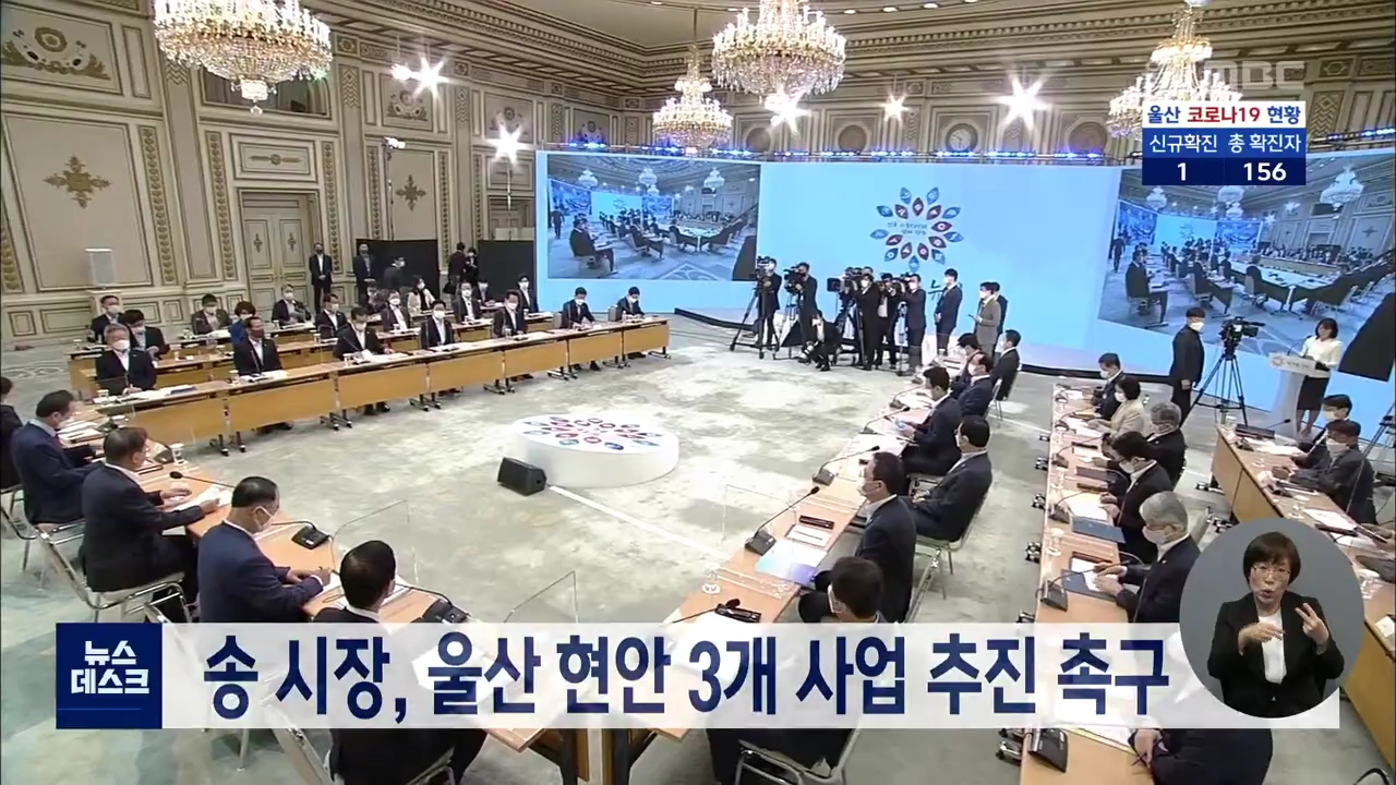 송철호 시장은 오늘(10/13) 청와대에서 열린 시도지사 연석회의에 참여해 한국판 뉴딜사업과 관련한 울산의 3가지 현안 사업 추진을 촉구했습니다. 송 시장은 울산앞바다 부유식 해상풍력사업에 국내외 대기업 참여가 잇따르고 있는 만큼 조속한 국비 투입을 요구했습니다. 또 낙동강 통합물관리 사업을 한국판 그린뉴딜에 ...