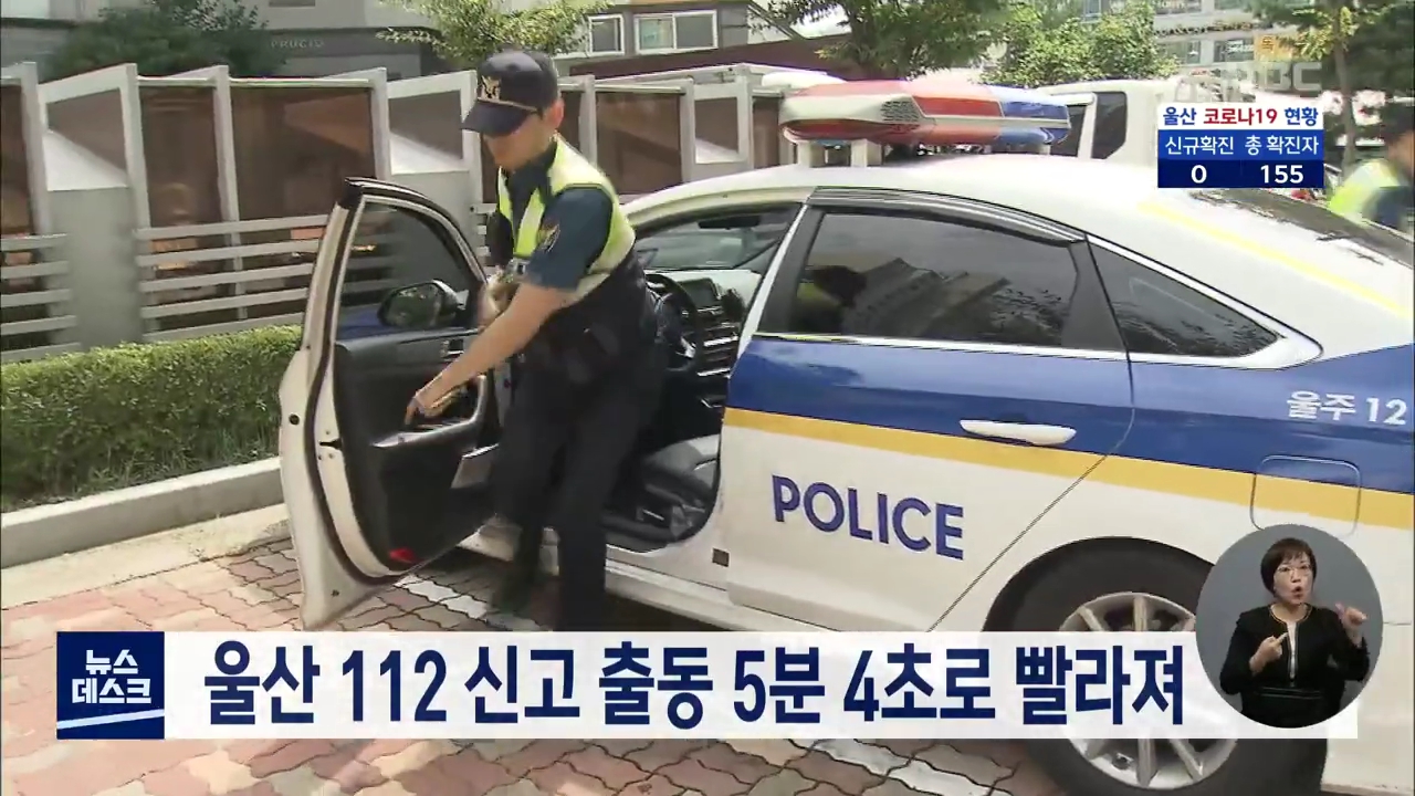 울산경찰의 112신고 출동시간이 지난해 보다 빨라진 것으로 나타났습니다. 경찰청 국정감사 자료에 따르면 울산의 112 신고 접수 후 현장에 도착하는 시간은 5분 4초로 지난해 5분 56초보다 52초 단축됐습니다. 전국 지방청 가운데 인천이 3분 53초로 가장 빨랐고 전국의 지방청 평균 출동시간은 5분 5초로 조사됐습니다.