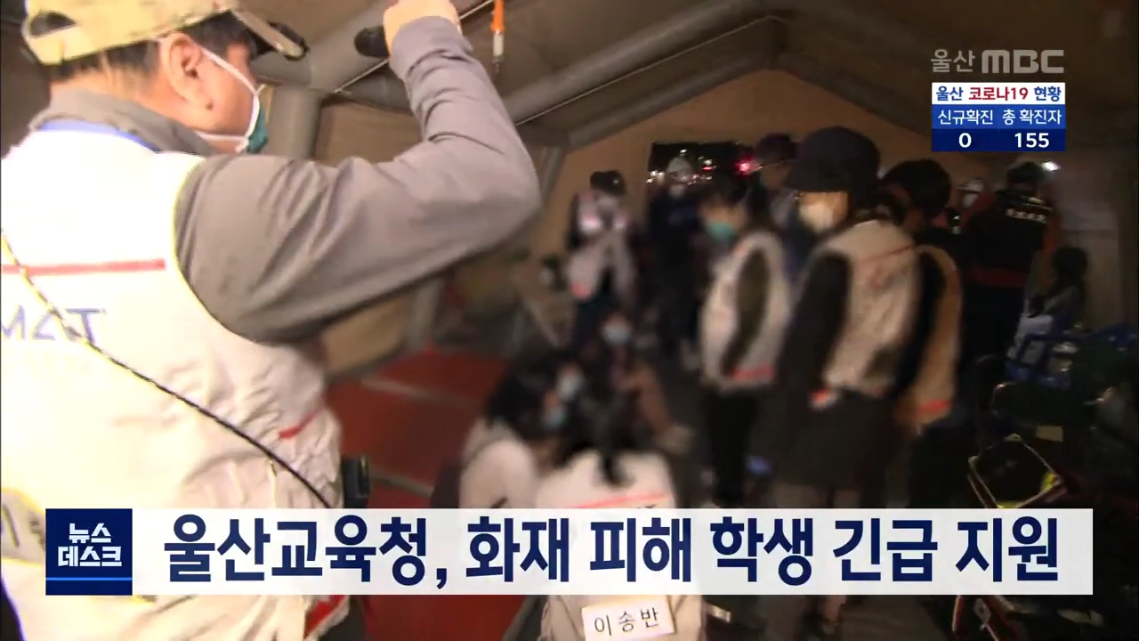 울산교육청이 화재 피해 학생에게 학습 물품을 긴급 지원하고 학습권을 최대한 보장하기로 했습니다. 시교육청은 이번 화재로 유치원생 5명, 초등학생 20명, 중학생 11명, 고등학생 16명, 교직원 3명이 이재민이 된 것으로 파악됐으며 이들에게 학용품과 노트북, 스마트 패드, 교복, 참고서 등을 지원한다고 밝혔습니다. 또...