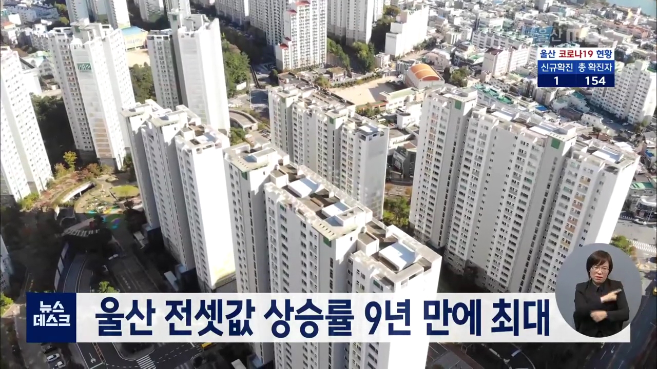 울산지역의 주택 전세 가격이 9월 한달에만 1.4%가 올라 지난 2011년 11월 이후 가장 큰 폭의 오름세를 보였습니다. 한국감정원에 따르면 지난달 전국 평균 전셋값 상승률은 0.53%에 그친 반면, 울산은 17개 시·도 가운데 세종시에 이어 두번째로 높은 상승률을 기록했습니다. 부동산업계는 지역 주택시장이 일부 과열 양상...