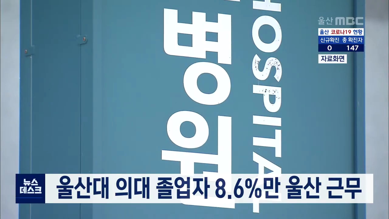 울산이 지역 의대 졸업자 중 해당 지역에서 근무하는 의사의 비율이 전국에서 가장 낮은 것으로 나타났습니다. 국회 보건복지위원회 최혜영 의원이 보건복지부로부터 받은 자료에 따르면, 지난 1974년부터 올해 4월까지 울산대 의대를 졸업한 866명 중 울산에서 근무하는 의사는 74명으로 전체 졸업자의 8.6%에 불과한 것으...