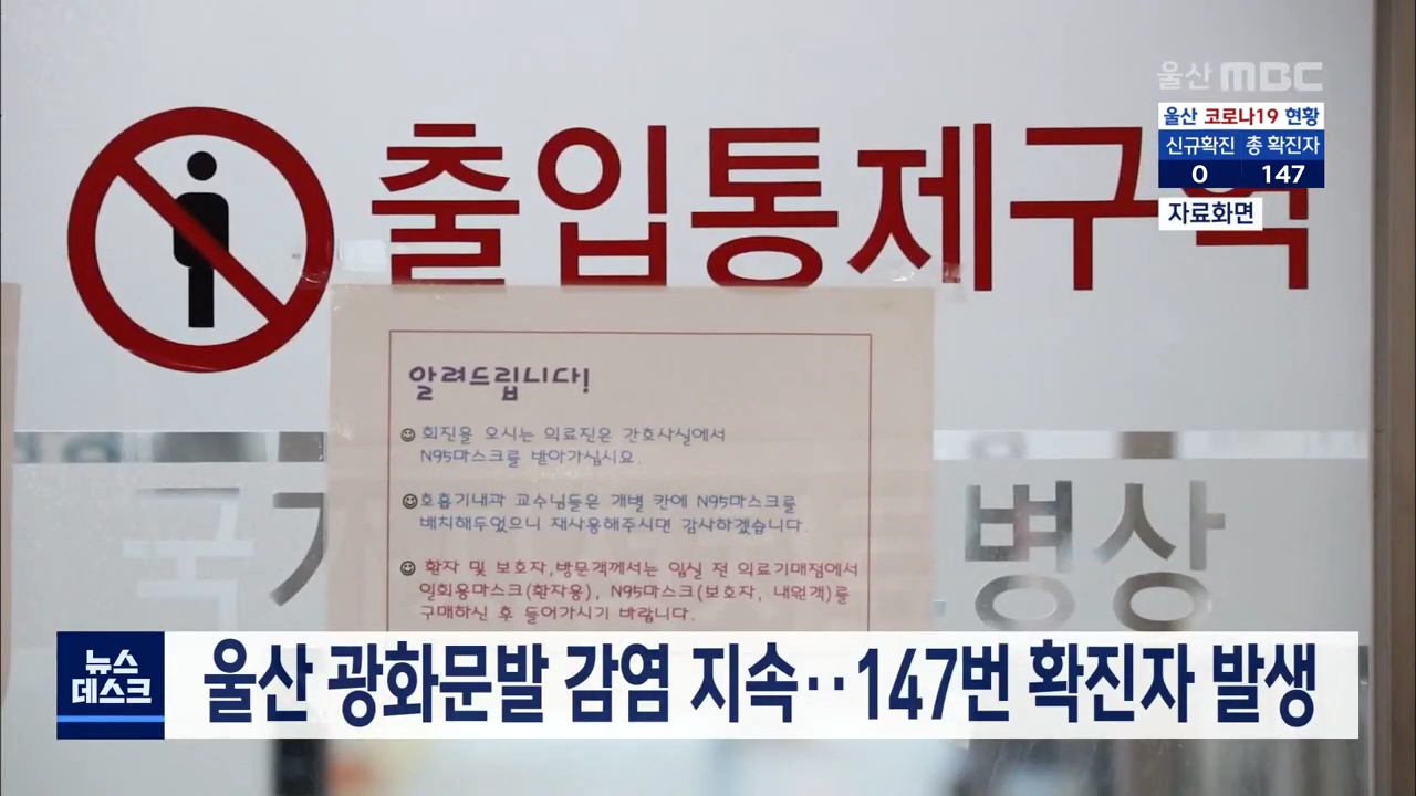 울산에서 지난 8월 광화문 집회발 코로나19 감염이 한 달 반이 지나도 지속되고 있습니다. 어제(9/29) 오후 남구에 거주하는 47세 남성이 감염 판정을 받고 울산 147번 확진자로 분류됐습니다. 이 남성은 울산 고스톱 모임 최초 전파자와 사우나에서 접촉해 감염된 71살 남성의 아들로확인됐습니다. //