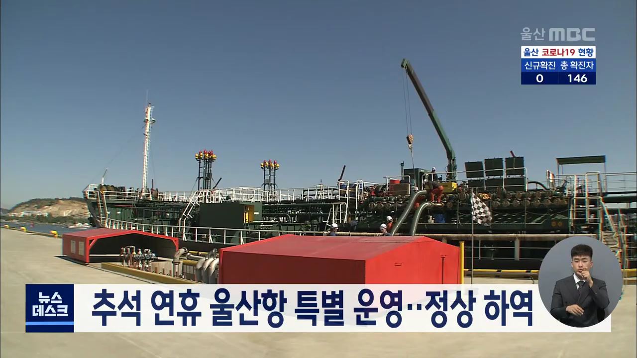 추석 연휴기간인 내일(9/30)일부터 10월 4일까지 울산항이 특별 운영합니다. 울산항만공사와 울산지방해양수산청은 추석 연휴 기간 특별대책반을 편성하고 유류·석유화학제품 등 액체 화물 취급 부두는 휴무 없이 정상 하역 체제를 유지하고 컨테이너 터미널은 추석 당일만 휴무하기로 했습니다. 또 신속한 하역 작업이 필...