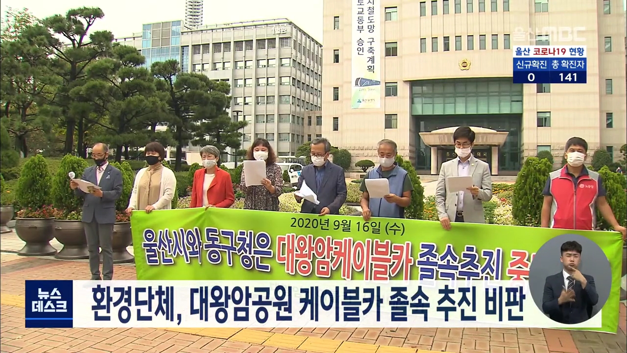 대왕암케이블카 시민대책위는 오늘(9/16) 시청 정문 앞에서 기자회견을 열고 대왕암공원 케이블카 사업은 공론화나 의견수렴 없는 일방적 추진이라고 비판했습니다. 대책위는 작년 케이블카 타당성 조사에서는 경제성이 없다고 평가했지만 지난 8월 경제성이 있다는 상반된 결과를 발표한 것은 신뢰성이 떨어진다고 주장했...