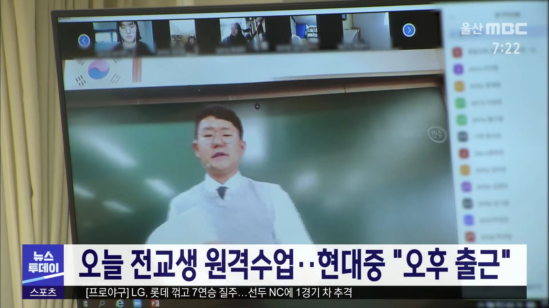 오늘 전교생 원격수업..현대중 "오후 출근"