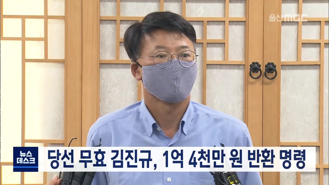 울산남구선거관리위원회는 공직선거법 위반 혐의로 당선 무효형이 확정된 김진규 남구청장에게 선거비용 보전금과 기탁금 등 약 1억 4천만 원에 대한 반환 명령을 내릴 예정이라고 밝혔습니다. 반환금은 고지받은 일로부터 30일 이내에 납부해야 하며 울산 남구청에 귀속될 예정입니다. //