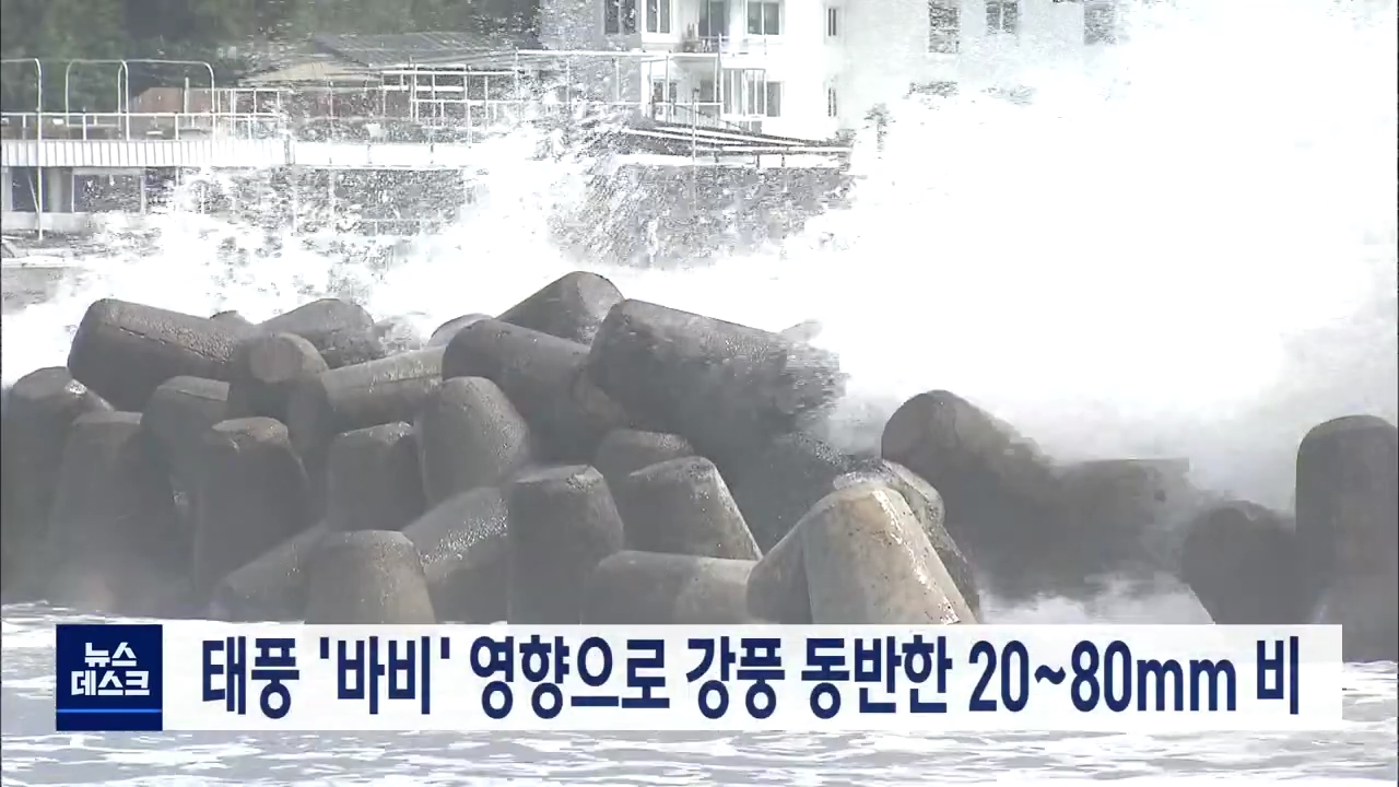 태풍 '바비' 영향으로 강풍 동반한 20~80mm 비