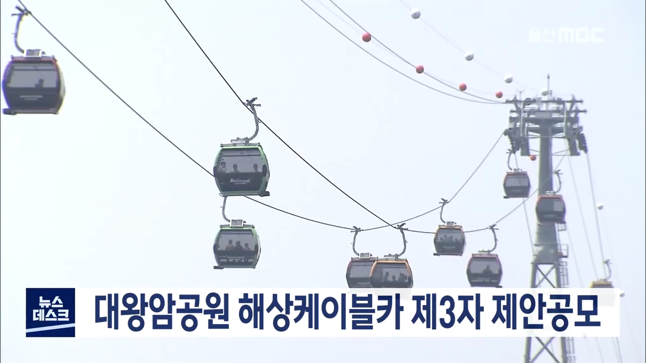 영남알프스 케이블카에 이어 대왕암공원 해상케이블카 개발사업이 제3자 제안공모에 들어갑니다. 울산시는 내일부터(8/27) 11월 25일까지 90일 동안 제3자 제안공모를 받은 뒤 우선협상대상자를 선정해 사업을 추진할 계획입니다. 영남알프스 케이블카 개발사업은 앞서 지난 14일부터 제3자 제안공모에 들어갔습니다. //