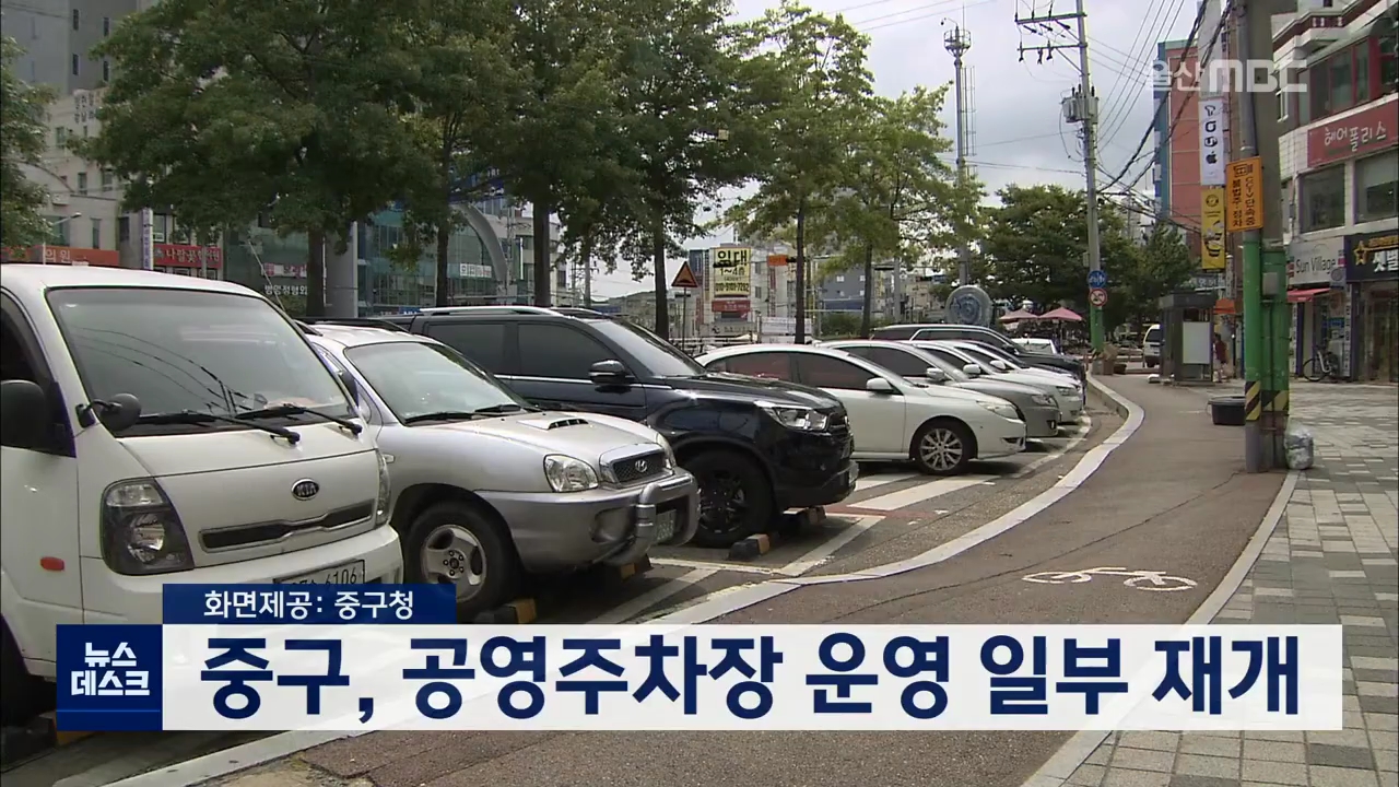 중구는 코로나19 여파로 지난 3월부터 운영을 중단했던 일부 공영주차장 운영을 다음달 3일부터 재개한다고 밝혔습니다. 중구 도시관리공단은 현재 휴업 중인 공영주차장 5곳 가운데 약사복개천 노상 공영주차장과 병영막창거리 공영주차장 운영을 우선 재개할 예정입니다. //