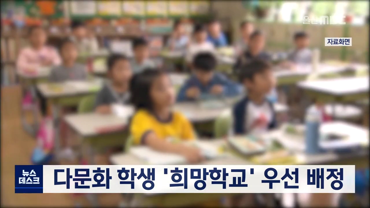 울산교육청은 교육법 시행령 개정에 따라 다문화 학생들이 원하는 중학교에 진학할 수 있도록 우선 배려하겠다고 밝혔습니다. 다문화 학생들은 지금까지 중학교에 진학하기 위해 직접 학교를 알아보고 입학 허가를 받아야 했지만, 앞으로는 관할 교육장 권한으로 학생이 원하는 학교에 배정할 수 있도록 법령이 개정된 겁니...