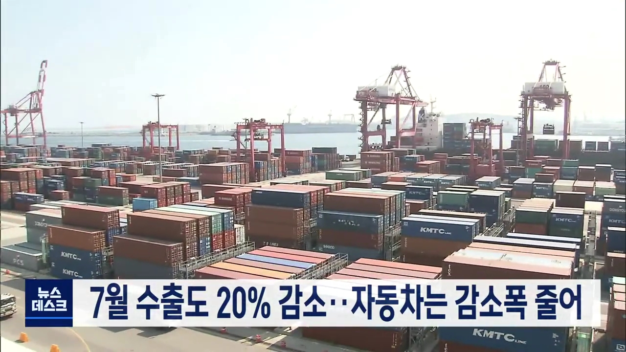 7월 수출도 20% 감소..자동차는 감소폭 줄어
