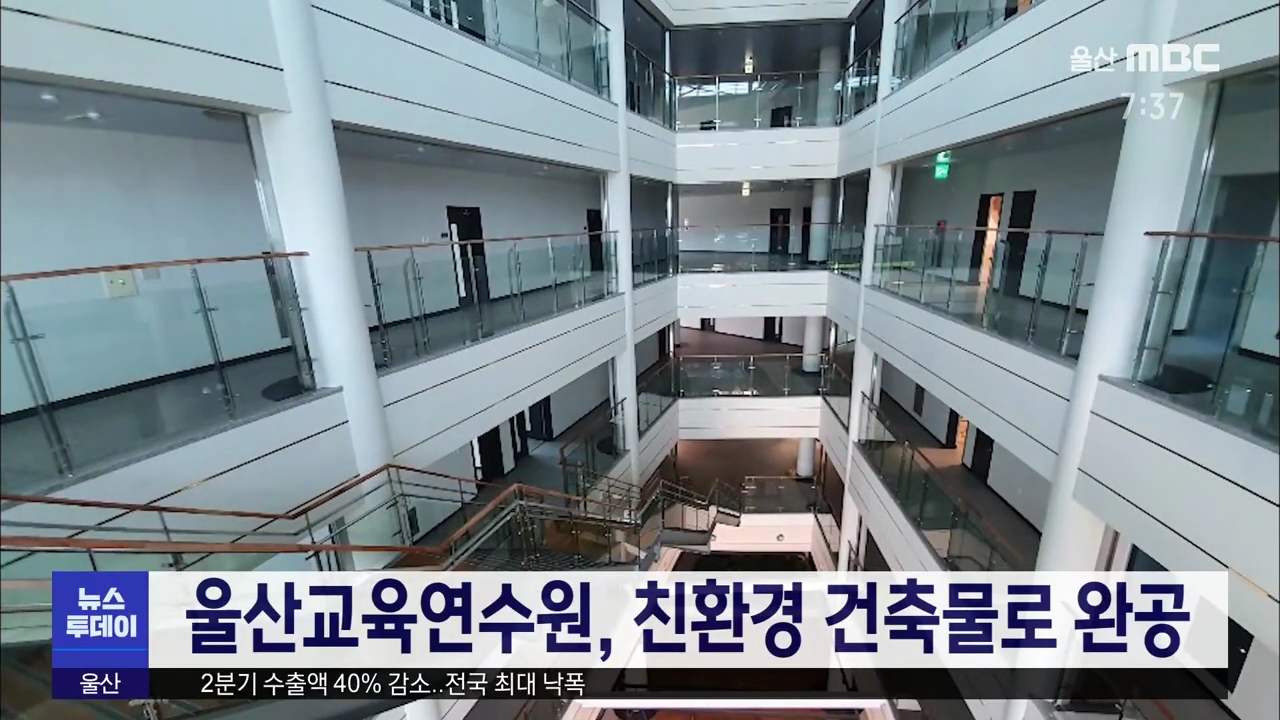 울산교육연수원이 옛 강동중학교 부지에 준공됐습니다. 울산교육청은 지난해 1월 착공한 교육연수원에 총 사업비 220억 원을 투입해, 내진 설계와 장애물 없는 환경 등을 갖춘 친환경 건축물을 조성했다고 밝혔습니다. 교육연수원은 지상 4층, 연면적 1만 ㎡ 규모로 다양한 교육 연수 프로그램을 주관할 예정입니다.//