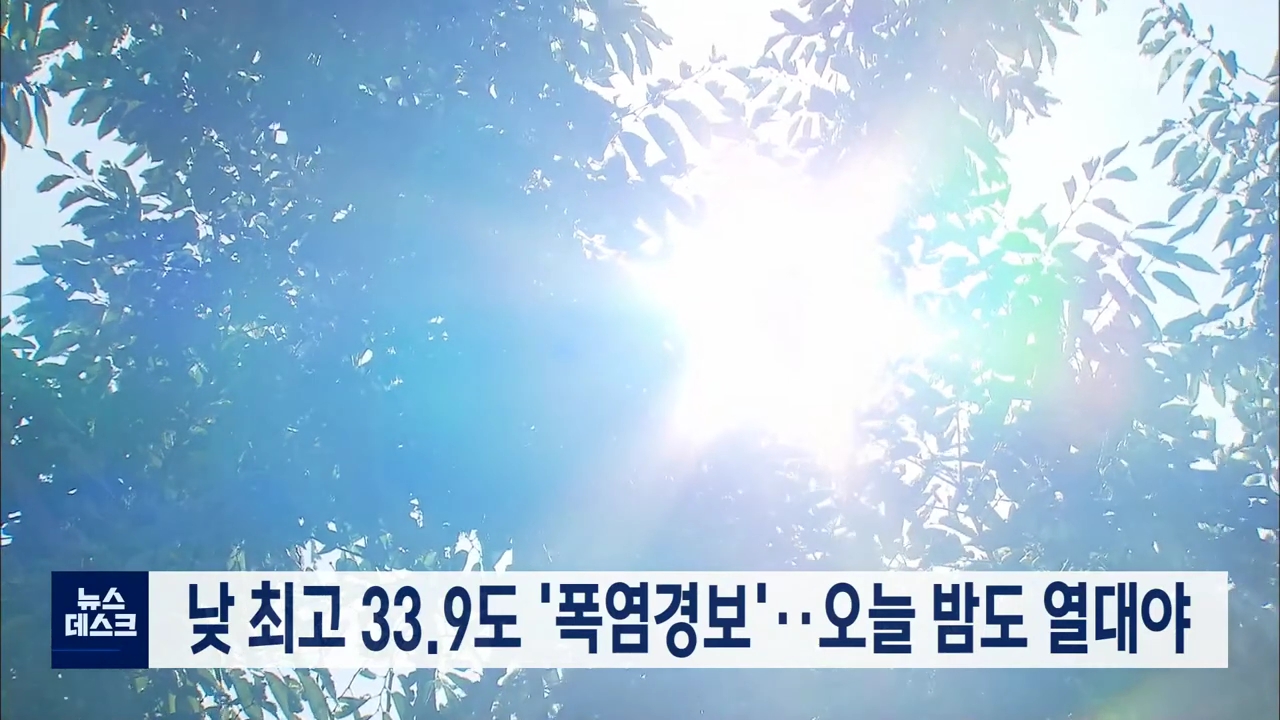 낮 최고 33.9도 '폭염경보'..오늘 밤도 열대야